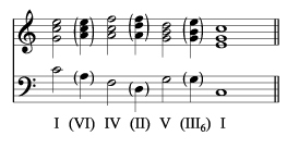 順便提一下,既然西歐音樂可以概括在 V I 之上,那麼,中國的五聲音階音樂是否可以概括在一個無動力的、靜止的主和弦上呢!即 d (r) m s (l) d’五聲音階中的 r 及 l 音,當作輕度的不協和音,包含在主和弦 中,當作和弦音呢!